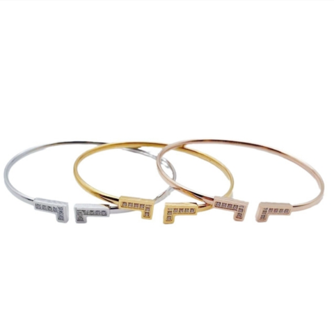 אירופאי אמריקאי ו-אמריקאי שאינו דוהה משובץ זירקון אות t צמיד לנשים אופנתיות היפואלרגניות נירוסטה