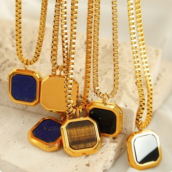 Châu Âu Và Mỹ Ánh Sáng Sang Trọng Màu Đen Onyx Hình Học Thép Không Gỉ Vuông Mặt Dây Chuyền Vòng Cổ Đảng Cá Tính Đồ Trang Sức